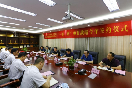 8月17日,米兰milan官方网站与安徽开源路桥有限责任公司签署“一带一路”项目战略合作协议。安徽交通运输职业教育集团理事长、院长张国栋、职教集团秘书长、副院长王丰胜、学生处、土木系领导,安徽开源路桥有限责任公司党委书记、董事长黄风雷、党委副书记、工会主席支晓飞、党委委员、副总经理、总工程师袁斌及相关部门负责人出席签约仪式。