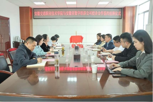 为进一步深化校企合作,推动人才链与产业链精准对接,为职业教育高质量发展增值赋能,4月27日,学院与安徽省数字经济管理服务有限责任公司举行了校企合作签约揭牌仪式。院党委委员、汽机系主任梁洪波、城信系党总支书记汪倩、安徽省数字经济管理服务有限责任公司执行董事、总经理朱宁及相关人员参加本次仪式。会议由城信系副主任(主持工作)兰清群主持。