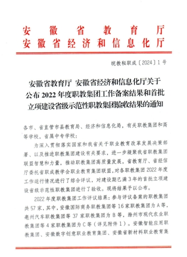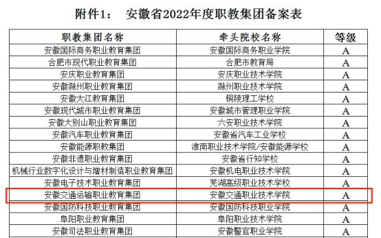 近日,省教育厅、省经信厅委托省职成教学会职业教育集团联盟,对联盟内57个职业教育集团2022年度工作运行情况进行了综合评议。由米兰牵头组建的安徽交通运输职业教育集团实现突破,荣获评议等级A等。