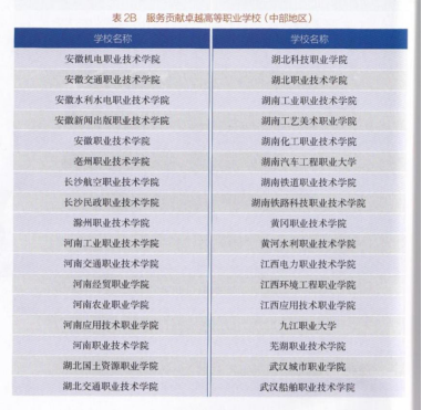 服务贡献卓越高等职业学校(中部地区)
