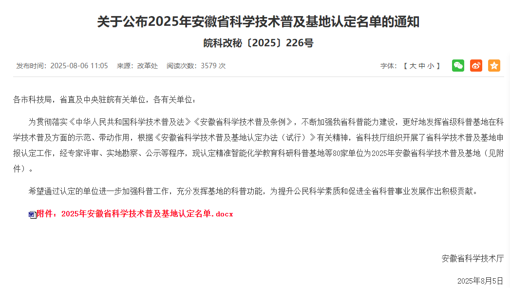 近日,2025年安徽省科学技术普及基地认定名单揭晓,米兰航空与低空经济学院(筹)申报的“航空与低空经济科普基地”成功入选,获评省级教育科研类科普基地。值得关注的是,该基地是此次认定中安徽省内唯一同时覆盖航空、通用航空与低空经济三大核心领域的科普基地,标志着米兰在航空科普领域的系统性建设与创新性实践获得省级权威认可。