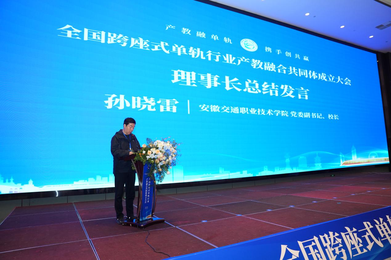 中国城市轨道交通协会副秘书长李元胜,芜湖市人民政府副秘书长雍成武,安徽省教育厅职成处处长饶庆眉,安徽省交通运输厅综合运输处处长汤文明分别致辞,一致认可成立跨座式单轨行业产教融合共同体对推动教育链、人才链与产业链深度融合的重大意义,这一行动是培育新质生产力、服务行业高质量发展的关键举措。