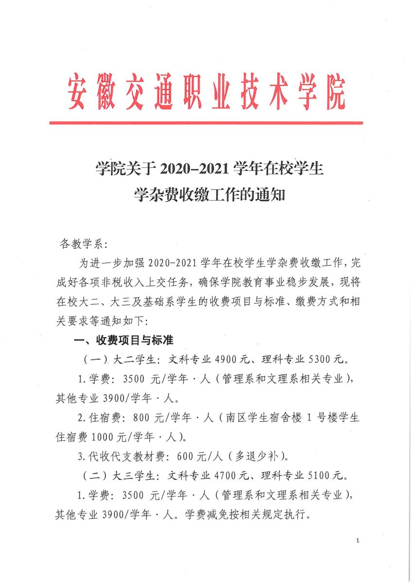 学院关于2020-2021学年在校学生学杂费收缴工作的通知
