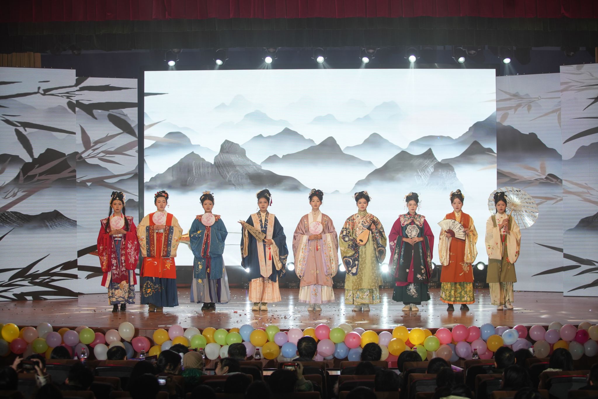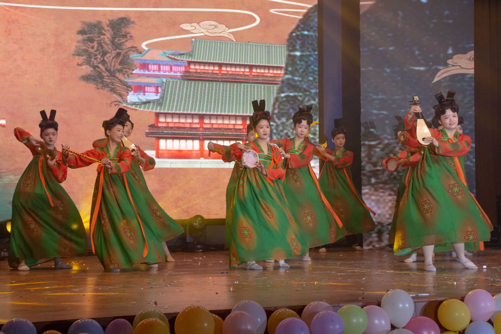 第一篇章“梦想起航”,以欢快、积极的舞蹈、歌曲、走秀节目回顾了2023年全系师生拼搏向上的经历,充满了校园生活的青春气息。歌曲《最美的太阳》鼓励新生不忘初心,勇敢追梦;古风走秀《满庭芳•国色》尽显传统艺术之美;歌舞剧《我心永恒》琴声幽幽,舞步翩翩,美妙绝伦。随后学院领导给国家奖学金、国赛、省职业技能大赛获奖同学进行了颁奖。