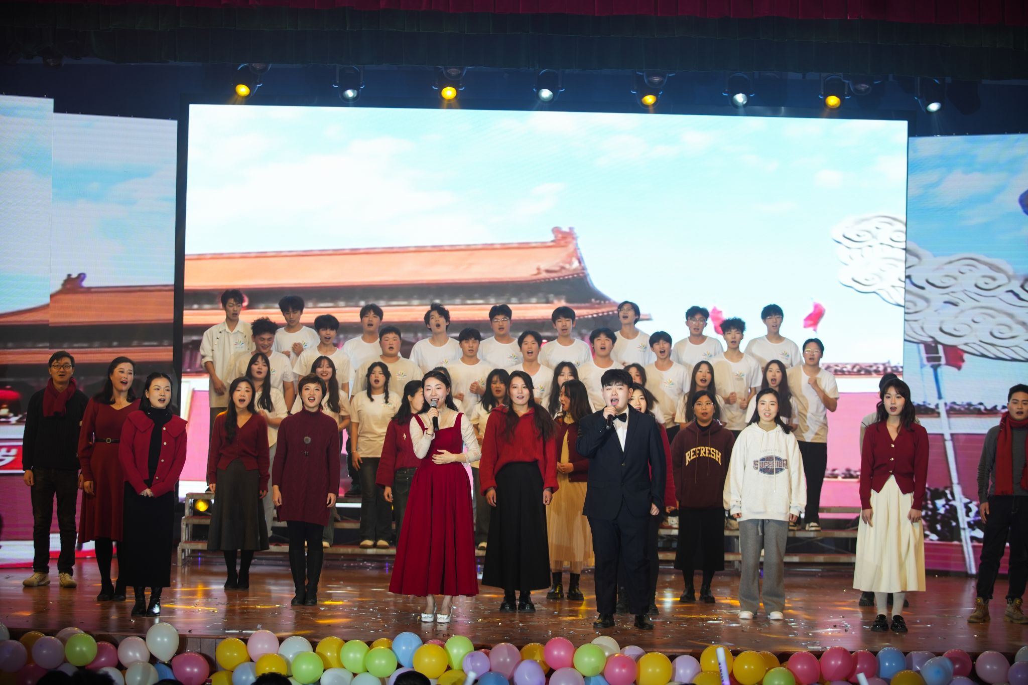 第三篇章“筑梦前行”,展现广大师生自强不息的精神风貌,勉励新生努力拼搏。师生朗诵《你好,辅导员》汇聚着一股股源自爱的暖流,引领着学子不断前进。舞蹈《唐宫夜宴》旋转跳跃间流淌出多彩的生命力量。晚会在师生集体大合唱《我们都是追梦人》中圆满落幕。