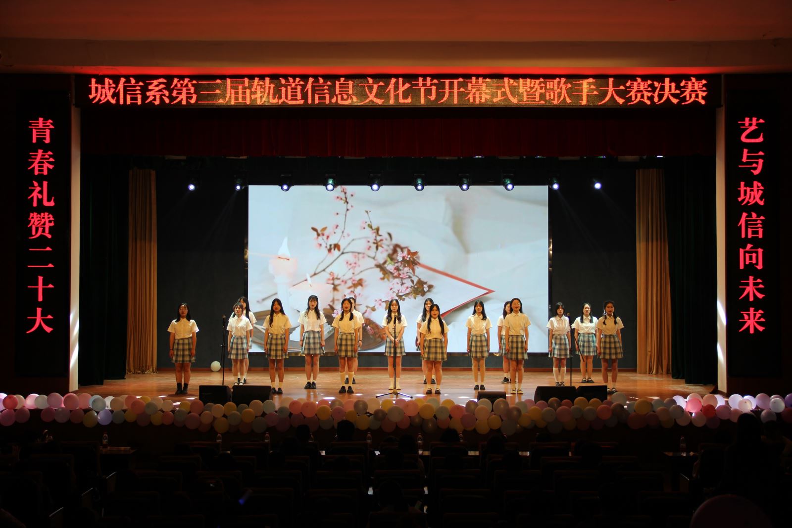为学习宣传贯彻党的二十大精神,弘扬“五四”精神,丰富校园文化生活,4月27日,城信系团总支在南区大礼堂举办了“青春礼赞二十大 艺与城信向未来”第三届轨道信息文化节开幕式暨歌手大赛决赛。城信系党总支书记汪倩、副书记承友明,院广播台指导教师余雪辉,院团委教师王萌钰、系学管教师及往届优秀毕业生参加开幕式。