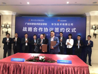 围绕大力发展职业教育的国家战略,校企共同推进“中国特色、世界一流”的国家“双高计划”软件技术专业群建设,广东科学技术职业学院(以下简称“广科院”)与华为技术有限公司(以下简称“华为”)通过发挥双方优势资源,在华为深圳总部签订战略合作协议。