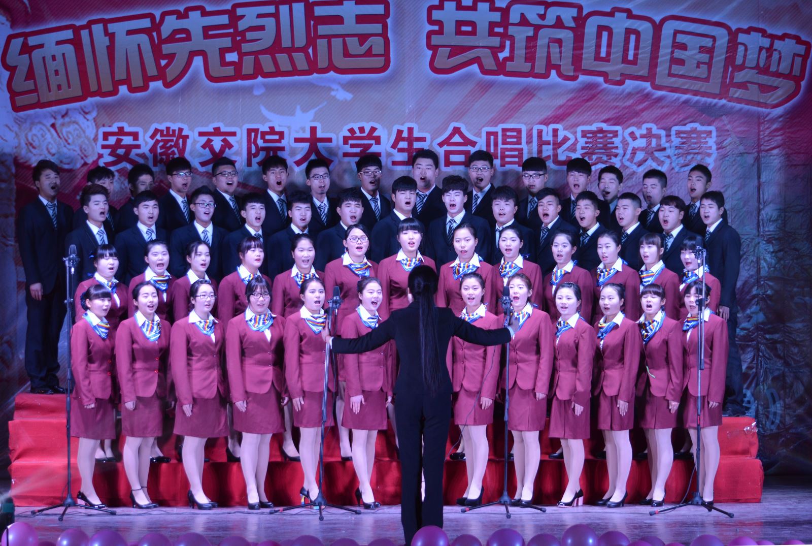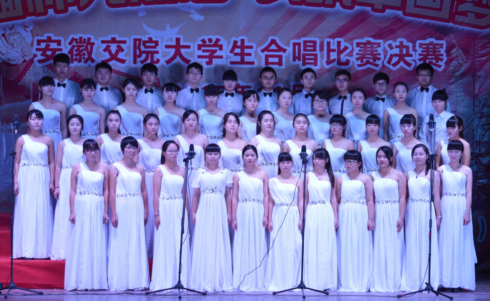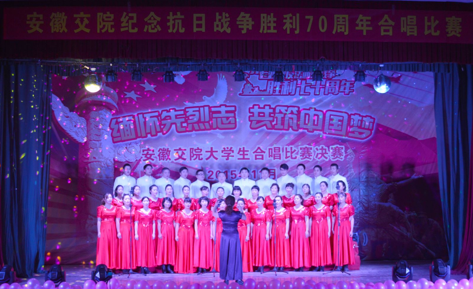 11月25日下午3:00,“缅怀先烈志,共筑中国梦”纪念抗日战争胜利70周年大合唱比赛在院南区大礼堂隆重举行。院党委副书记(主持党委工作)孙顺利、党委副书记、纪委书记陈明、副院长王丰胜、李亮等领导亲临比赛现场。比赛特邀中国音乐家协会会员、安徽省合唱协会副主席、安徽艺术职业技术学院音乐教授吴小舟,安徽广播电视台音乐广播策划部主任锐红,合肥师范学院音乐系龙飞担任评委。