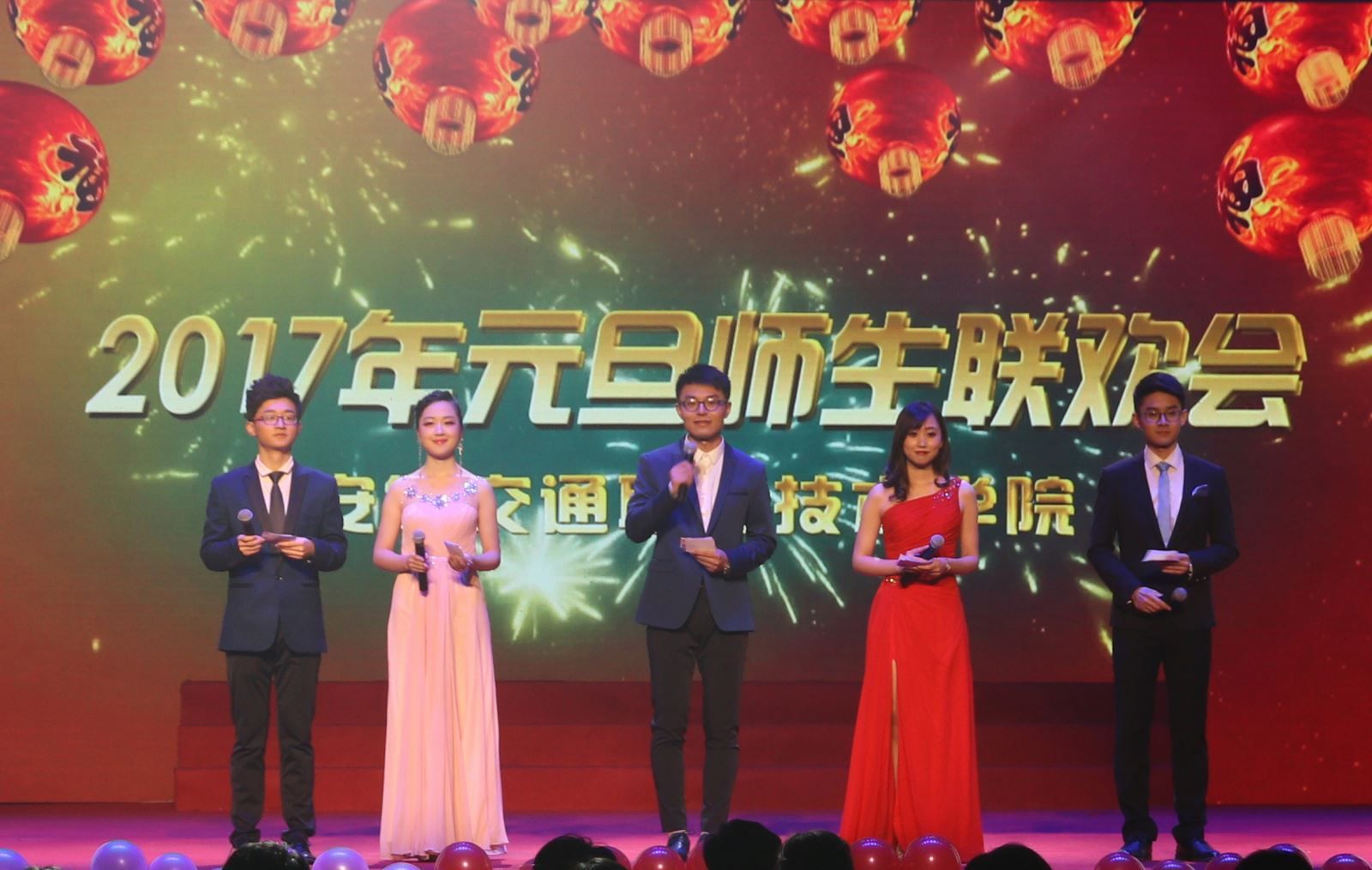 “凯歌高奏辞旧岁,一元复始气象新”,在新的一年即将到来之际,12月28日晚,2017年“不忘初心,春华秋实,砥砺前行”主题元旦师生联欢会在北区体育馆二楼隆重举行,院党委副书记、纪委书记陈明,副院长王丰胜、李亮、院纪委副书记王学贵及各系部处室负责人与同学们欢聚一堂一起迎接新年的到来。