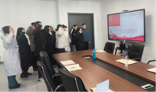 在庄严的党旗下,范雨洁、蔡玉洁、刘春阳三位预备党员同志紧握右拳,面向党旗郑重宣誓,表达了为共产主义事业奋斗终身的决心和信念。范雨洁同志作为新党员代表发言,她表示将牢记入党誓词,在今后的学习工作中,用更加严格的标准要求自己,不断强化理论学习,加强党性修养,努力进入到为人民服务的队伍中。陶琪在宣誓仪式上强调了党员的责任与使命,勉励新党员要时刻铭记入党誓词,践行党的宗旨,发挥先锋模范作用。