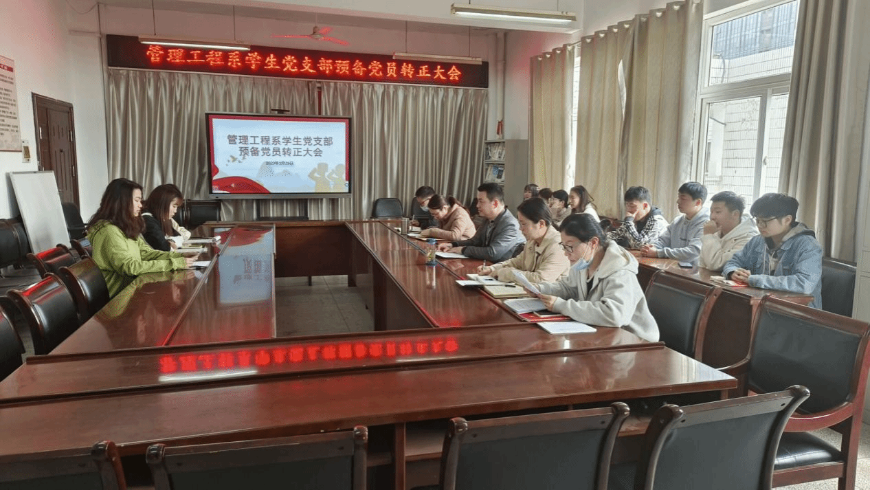 2023年3月29日,管理工程系学生党支部在系会议室召开预备党员转正大会。学生党支部书记陶琪及学生支部师生党员参加,本次大会由学生党支部姜薇主持。