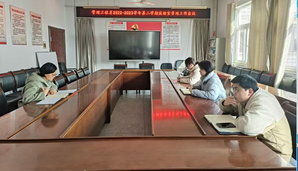 2023年3月3 日下午,新学期实训室管理工作会议在系会议室召开,系副主任及全体实验老师参会。会议传达了《2023年安徽省高等学校安全管理工作要点》,梳理了2022年度系实训室安全管理及日常管理主要工作,对新学期系实训室管理特别是安全管理做出具体安排。
