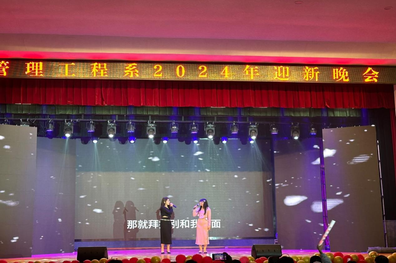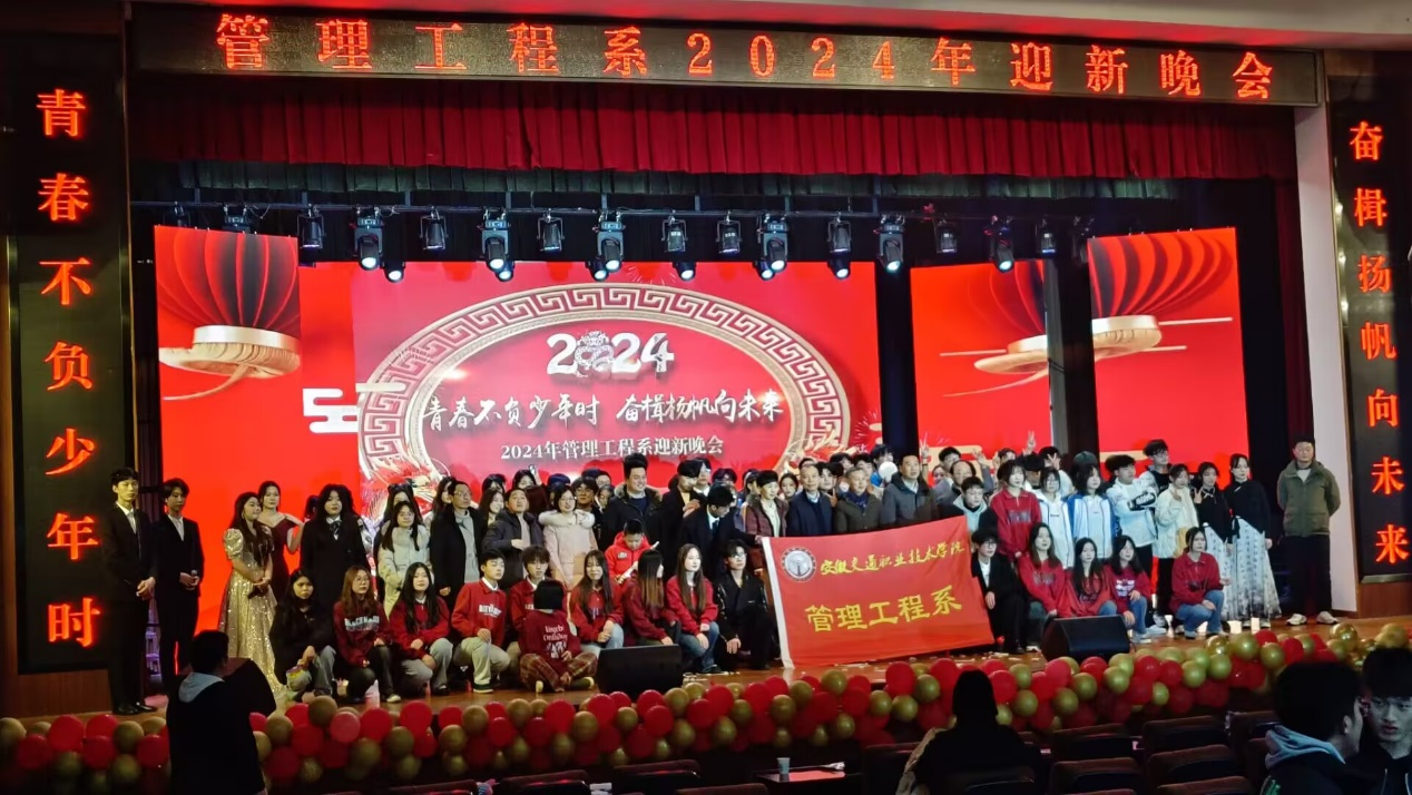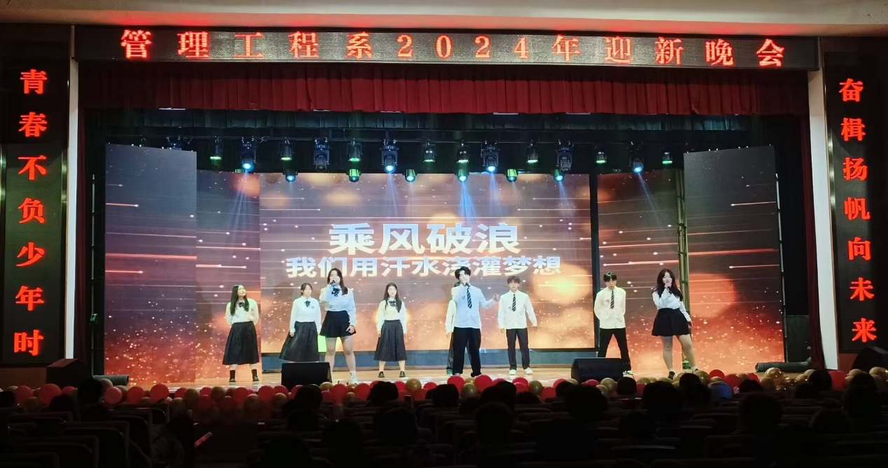 日月其迈,岁律更新,2024年1月2日晚,管理工程系在南区大礼堂举办2024年迎新晚会。院党委委员、副院长韦兵,党委委员、纪委书记季传友,院党委委员、学生处处长喻谨,学生处副处长、院团委书记刘元元,院团委宣传委员余雪辉,系领导班子同广大师生一起共度欢乐新年。
