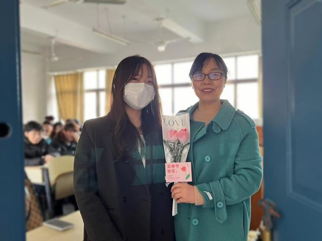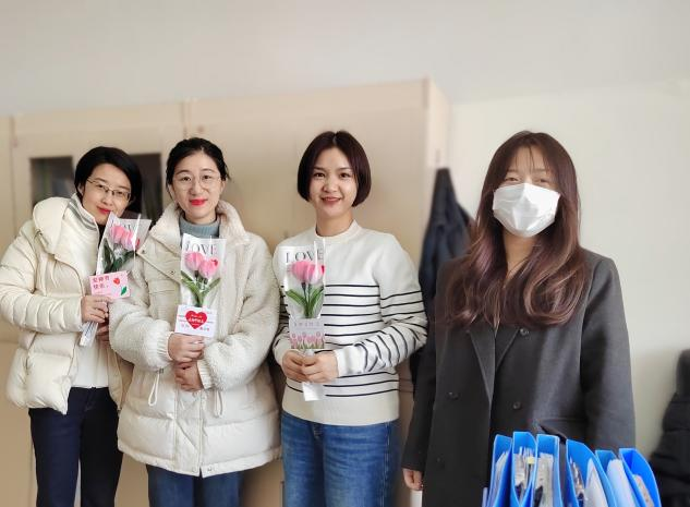 3月8日上午管理系学生会的志愿者们将象征着永恒祝福的郁金香扭扭花提前包装好,为女教师们送上一束扭扭花一句真挚的节日祝福。收到代表着学生们感恩之情和祝福之意花束的老师们,脸上都洋溢着幸福的微笑。老师们向志愿者们表示感谢的同时,也向所有女同学表达了节日的祝福。一束束美丽的小花,一句句暖心的话语增进了师生情谊,温暖了浪漫节日。