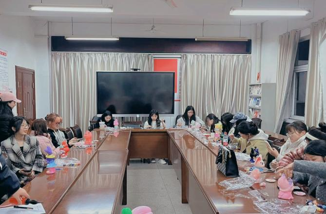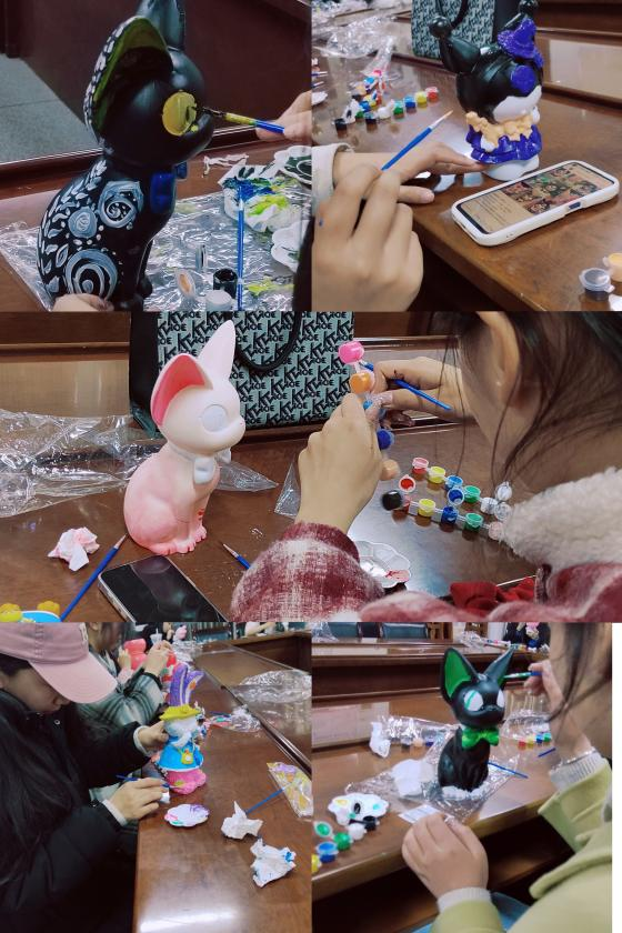 3月7日晚上管理系在系会议室开展了石膏娃娃DIY活动。活动现场,工作人员将提前准备好的搪胶娃娃、奶油胶等各式材料发放给参与活动的同学们,并耐心地讲解绘制技巧和注意事项。同学们肆意挥洒创意想象,使用丰富多彩的颜料赋予搪胶娃娃新的生命,创造了属于自己独特的节日礼物