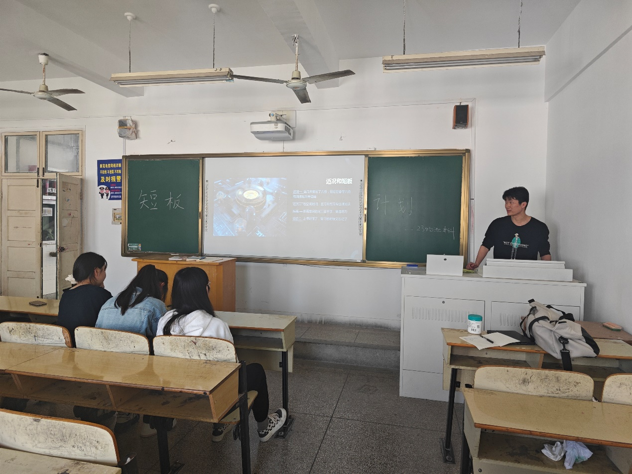 每周五下午516教室举办学习短板计划分享会上,同学们利用提前制作的PPT,精彩讲述最近的学习目标遇到的困难和完成的心得。通过短板计划,有同学分享四六级学习方法和技巧,帮助其他同学找到学习目标和方法;有同学分享教师资格证笔试学习心得,帮助5位同学通过2024年上半年教师资格证笔试考试。