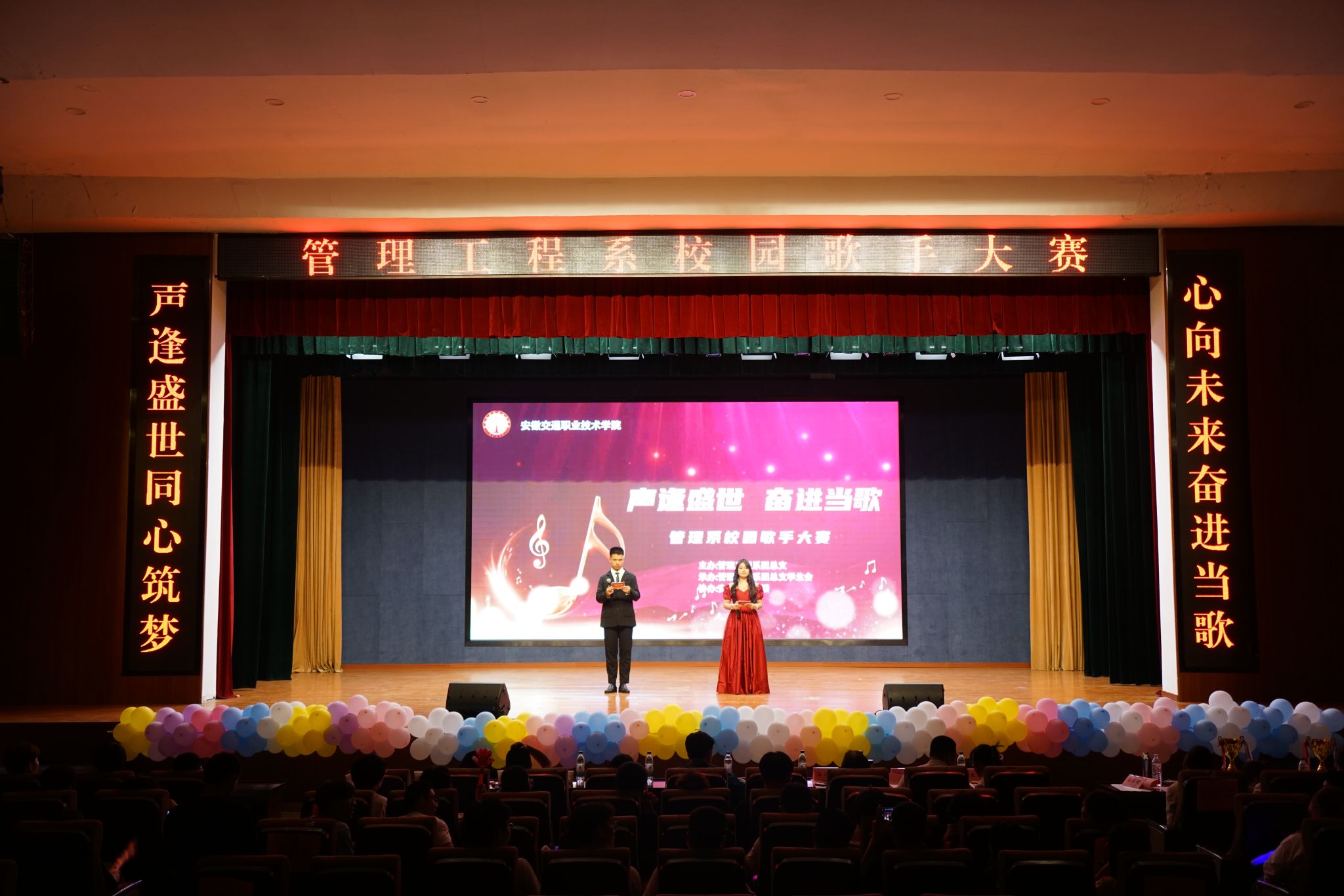 夏早日初长,南风草木香。为进一步丰富校园文化生活,推进美育高质量发展,全面提高学生的综合素质,展现新时代学生的精神风貌,5月22日晚,管理系2024年校园歌手大赛决赛在南区大礼堂顺利举办。院党委委员、纪委书记季传友,管理系党总支书记汪思曼、副书记陶琪,院团委副书记张静,院团委委员、大学生艺术团指导老师王萌钰,管理系团总支书记王思敏及300余名学生共同观看了比赛。