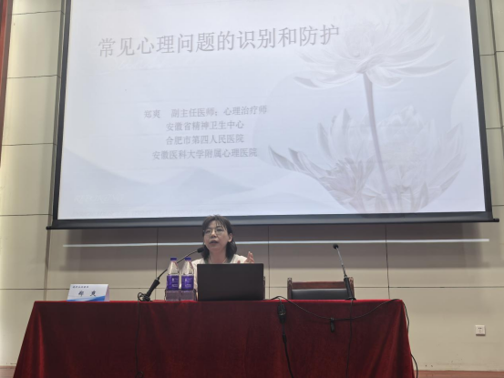 郑医生从身体和心理健康的含义,抑郁、焦虑、睡眠障碍、成瘾性行为等问题的成因、类型以及识别、干预和治疗方法,以及如何进行放松训练等六个方面出发,通过实际案例和数据,深入浅出地向同学们讲解了常见心理问题的类型,帮助同学们分析了问题出现的成因,指导同学们应该如何进行正确识别和科学应对、干预,引导大家学会做放松训练,在日常生活中能够自如释放压力,培养阳光乐观心态。