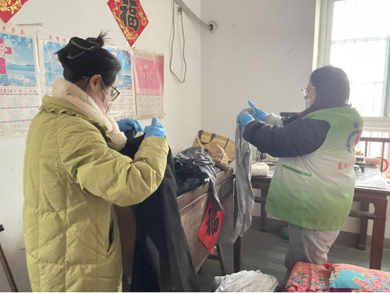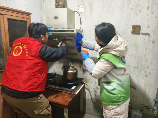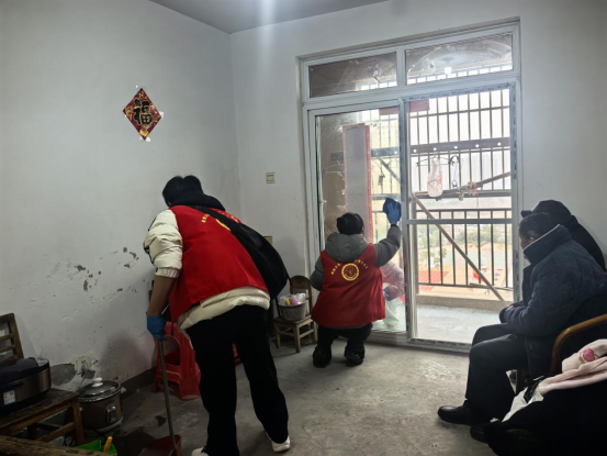 到达临湖社区祥园小区后,师生志愿服务队根据活动安排分为三组,开展志愿服务活动。第一组志愿者在社区工作人员的带领下进行走访慰问,为社区生活困难的孤寡老人送去物资和关怀。志愿者们与老人亲切交流,详细了解他们的身体状况以及生活上的困难,叮嘱老人们要关注天气变化,及时添减衣物,外出时要注意安全。充满温情的交流过后,志愿者们拿起扫帚、抹布等清洁工作,为老人们进行家政清洁,帮他们整理换洗衣物,拂去家具旧尘,擦拭干净窗户,清洗锅碗瓢盆。老人们深深地感受到了志愿者们送来的慰藉和关怀,本次活动弘扬了尊老敬老的社会风尚,赢得了老人们的一致好评