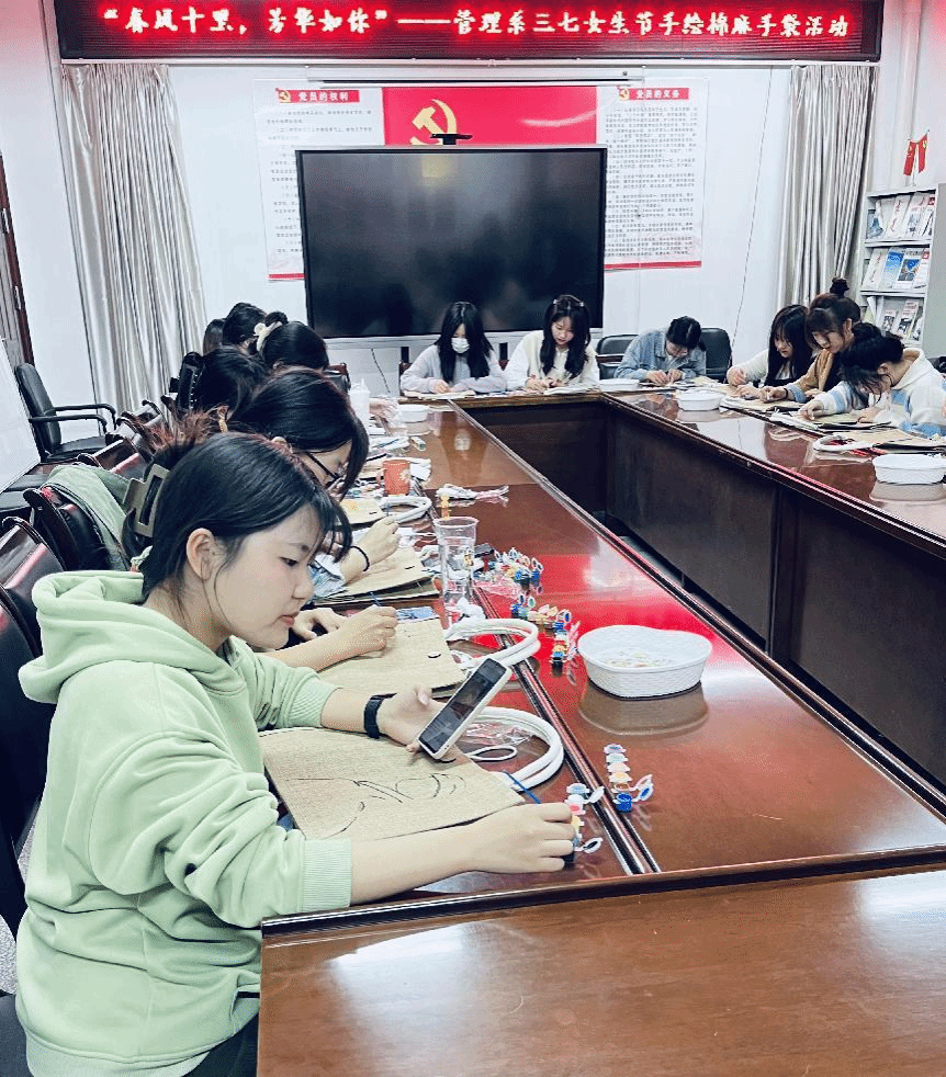 为丰富女大学生课余生活,搭建系部女生结识朋辈、发展兴趣爱好的平台,3月7日,管理系面向全系女生,在系会议室举办“春风十里,芳华如你”的三七女生节手绘棉麻手袋活动。