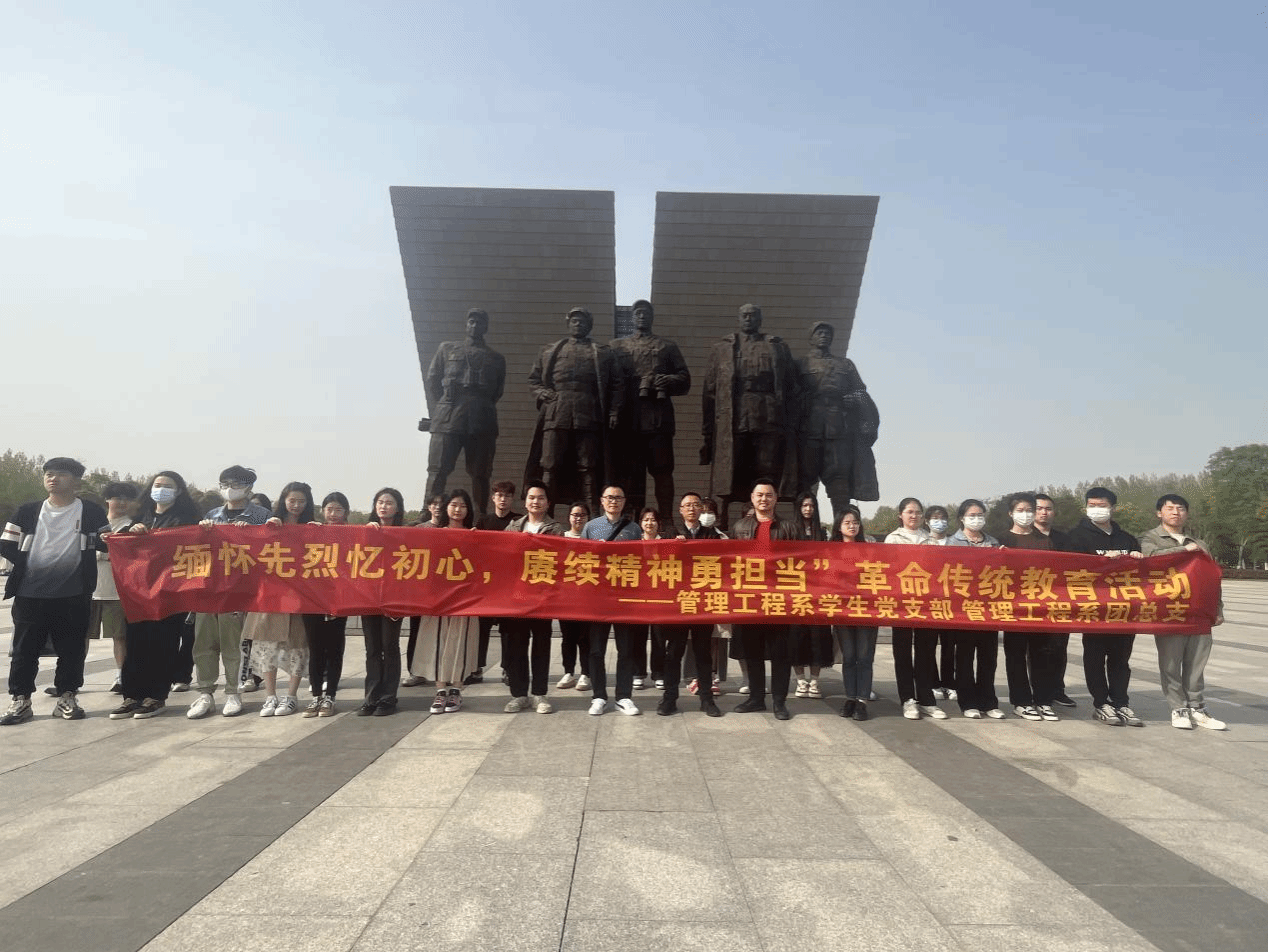 为深入学习宣传贯彻党的二十大精神,缅怀革命先烈,传承红色基因,4月12日下午,管理系党总支副书记陶琪带领教师党员、学生党员以及学生团员前往渡江战役纪念馆,开展以“缅怀先烈忆初心,赓续精神勇担当”为主题的革命传统教育活动。