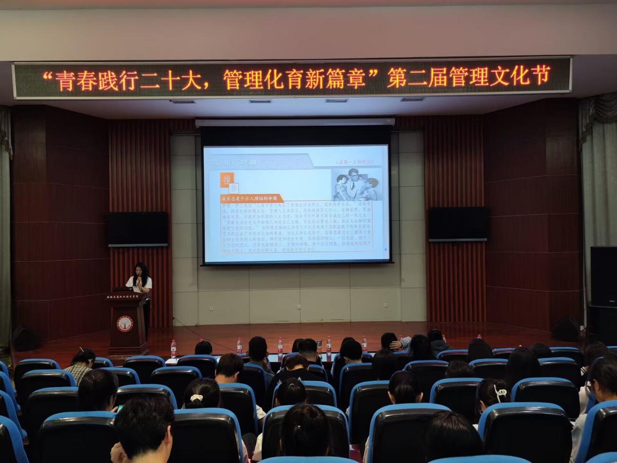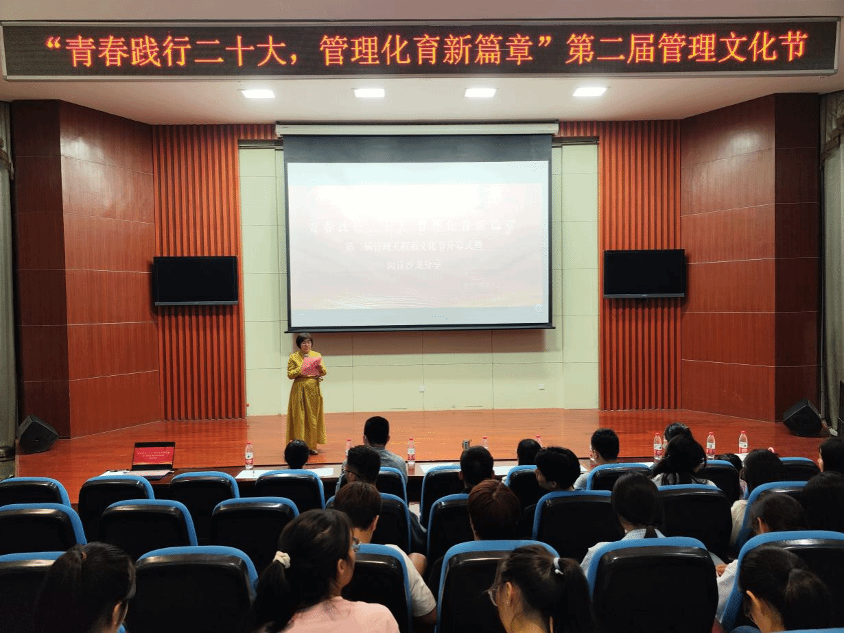 为全面学习宣传贯彻党的二十大精神,传承“五四”精神,推进校园文化建设,进一步落实“五育”并举的要求,5月4日,管理系团总支在八角楼学术报告厅举办第二届管理文化节开幕式暨阅读沙龙活动。管理系党总支书记汪思曼、副书记陶琪、院团委书记刘元元、团委委员王萌钰以及系学管教师出席本次开幕式,并担任阅读沙龙活动评委。