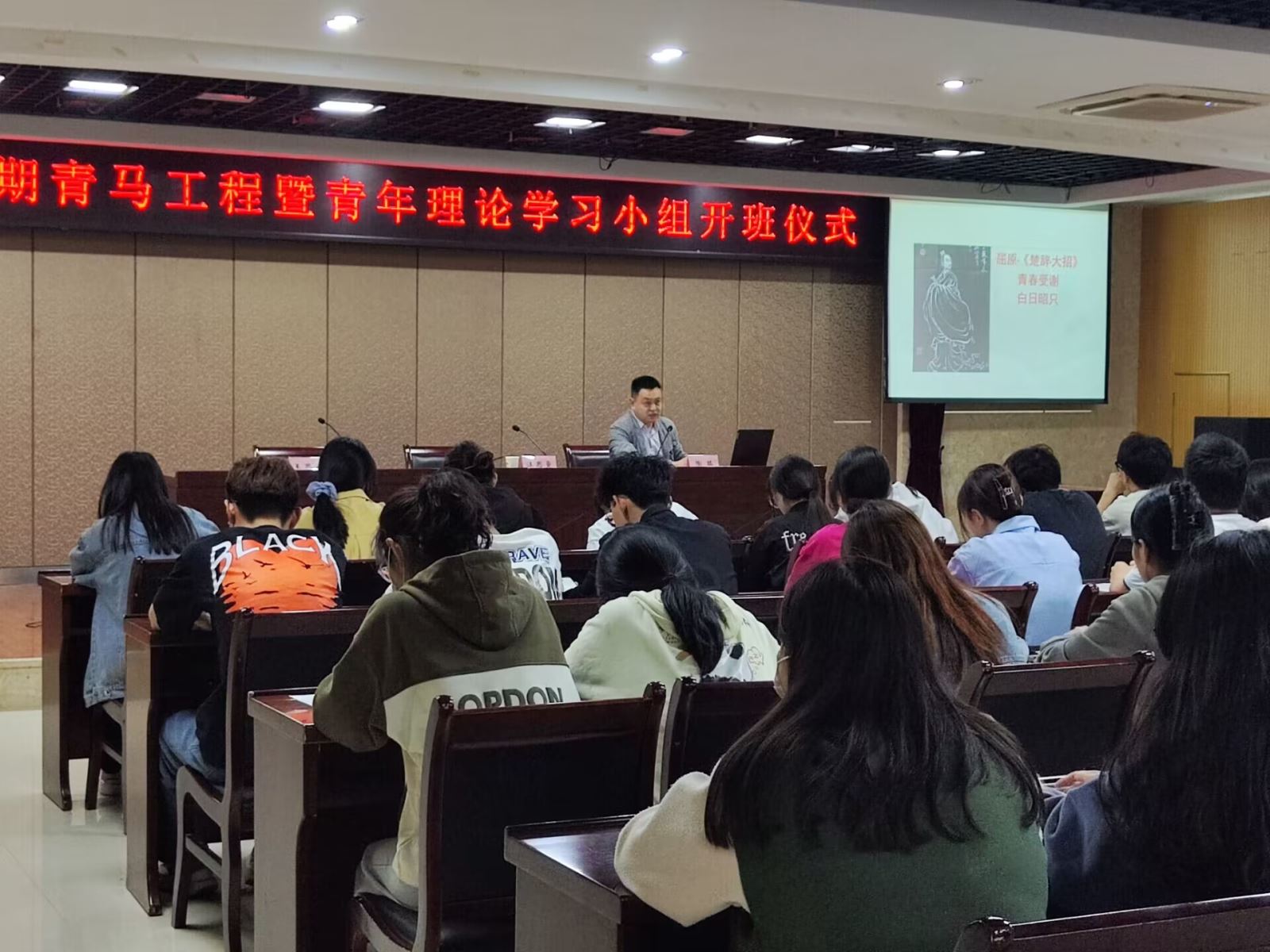 汪思曼为开班仪式致辞,她指出,青马工程和青年理论学习小组为我系广大青年学子提供了一个提升政治理论素养、坚定理想信念的良好平台,希望所有学员能够利用好这个学习平台,积极参加培训班开展的各项活动,把学习习近平新时代中国特色社会主义思想作为重大政治任务,持续跟进学习,感悟思想伟力,凝聚奋进动能。她要求全体学员,一要深化政治理论学习,坚定理想信念,发挥青马工程和青年理论学习小组的辐射作用;二要加强实践锻炼,注重知行合一,坚持理论联系实际,学以致用,发挥青马工程和青年理论学习小组的纽带作用;三是树立远大志向,秉持家国情怀,要立大志明大德成大才担大任,发挥青马工程和青年理论学习小组的引领作用。