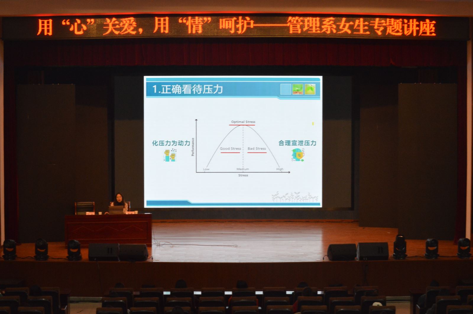 为进一步加强女大学生心理健康教育,引导她们更加自信从容、积极向上地面对生活,管理系于2021年12月8日下午在南区大礼堂举行了用“心”关爱,用“情”呵护——女生专题讲座。本次讲座邀请了安徽建筑大学副教授、心理健康教育专家郑敏担任主讲,讲座由管理系党总支副书记陶琪主持。