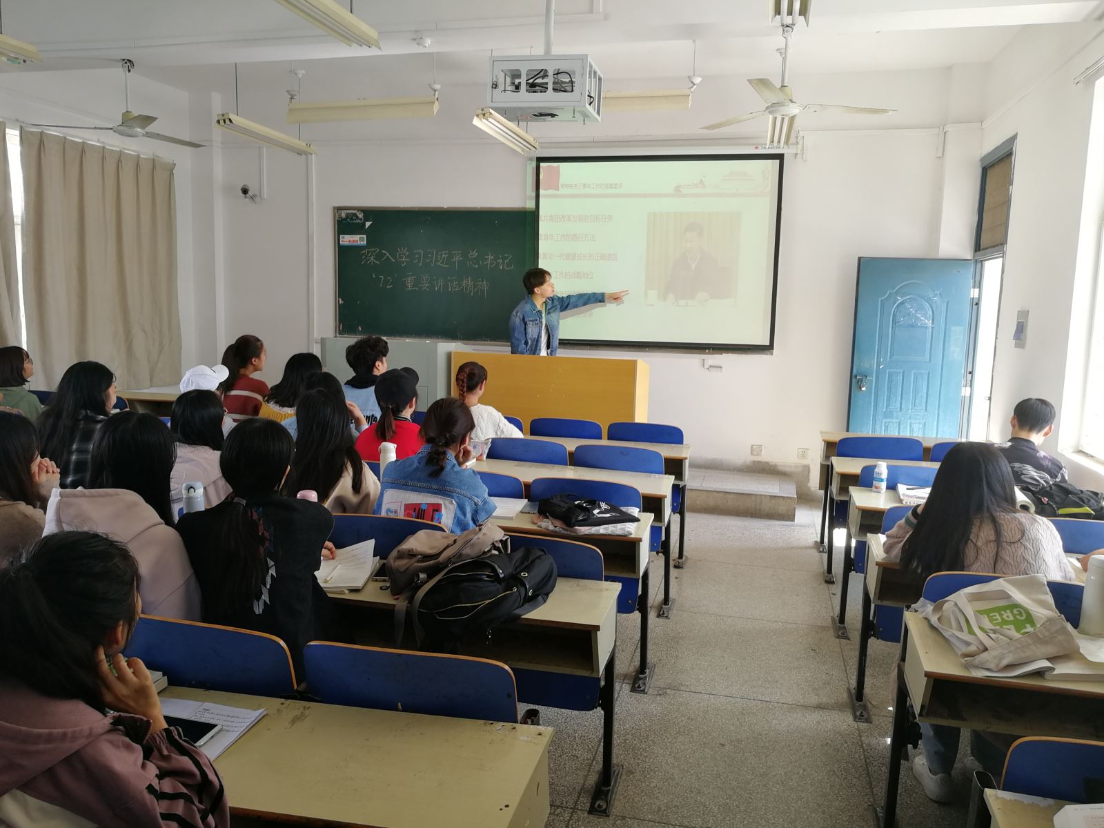 10月下旬,各班团支部陆续正式开展了主题团日活动,组织各支部团员观看由系学生会组织部牵头制作的PPT,来深入了解和学习习近平总书记“7.2”重要讲话精神,各支部的学习形式多样,有集体观看视频、小组讨论学习或个人分享学习心得等。通过这次学习大家一致认为要深入贯彻落实习近平总书记讲话内容,团员青年们要以身作则,从小事做起,把习近平总书记重要讲话精神贯彻到今后的学习和生活当中去。