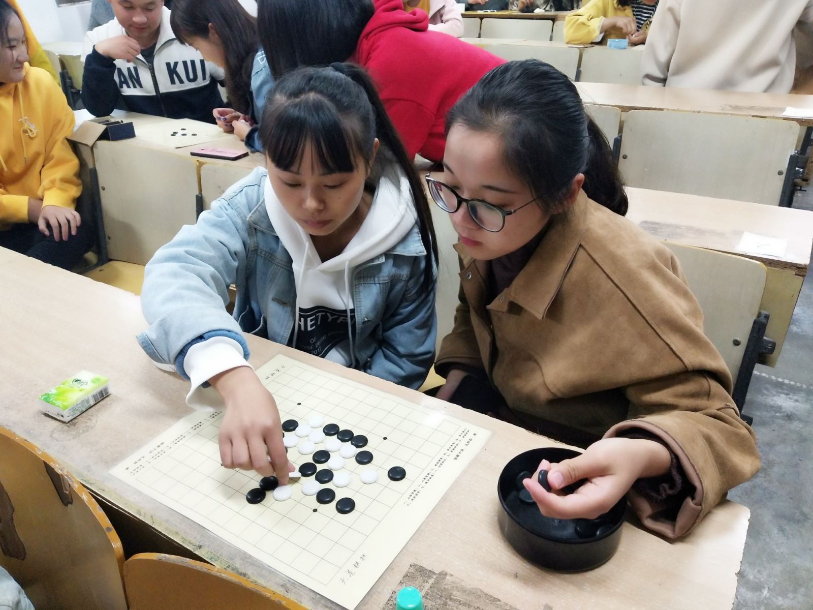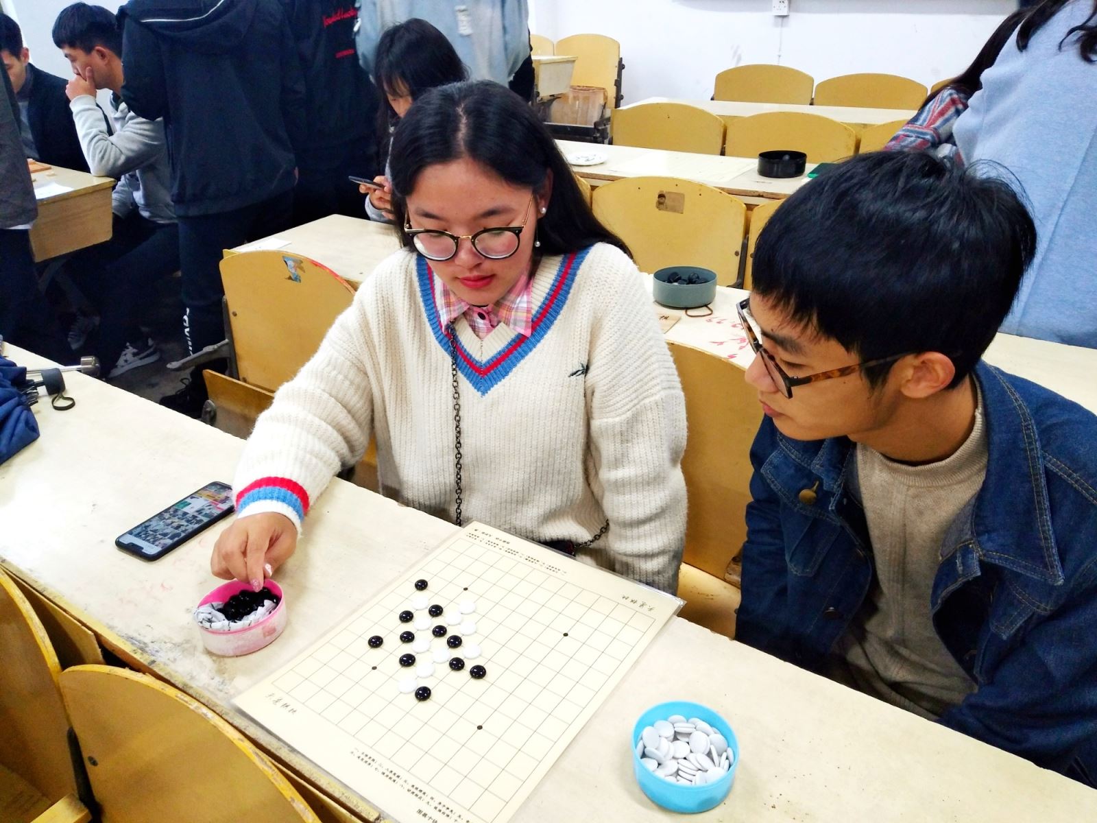 本次棋艺比赛分五子棋和象棋两种比赛项目,采取淘汰制和积分制的晋级方式,近百名选手进行了激烈角逐。棋弈对阵,智谋比拼,楚河汉界,花落谁家?比赛一开始选手们就投入了这场思维战中,每张桌子都成了战场。你争我夺,一时间棋盘上纵横交错,战火熊熊,选手们你堵我截。比赛中,选手们本着“切磋棋艺,以棋会友”的原则,表现出了良好的竞技状态。最后,来自17491的李金耀同学取得象棋比赛第一,18421的左涛同学取得五子棋第一。此次比赛也吸引了很多同学前来观看,但大家都深谙“观棋不语”的道理,保持着安静,共享竞技的快乐。