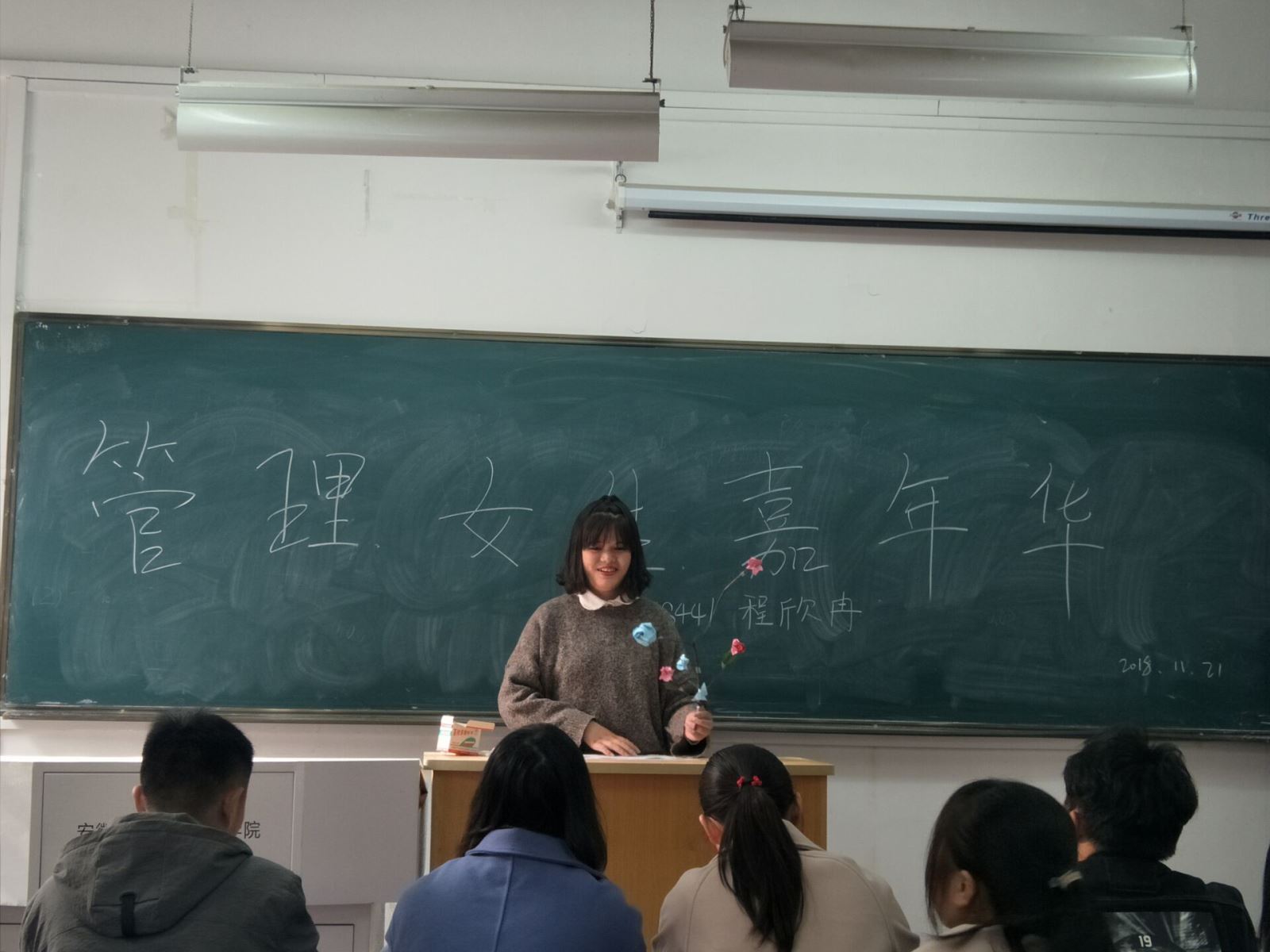 活动中,同学们上台讲述了自己所画的未来愿景图及其折纸所代表的意义,晒出了参赛者与其他女生的合影。最后,我系组织了一场观影活动。管理系女生集中观看了电影《穿普拉达的女王》,感受了职业女性的魅力。活动开展过程中,充分展现了女性朋友巾帼不让须眉的一面。