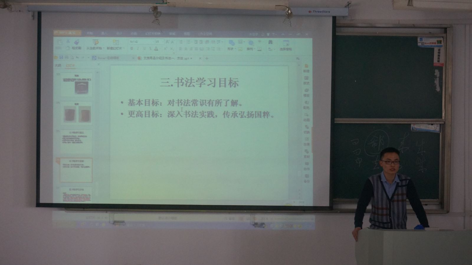 为大力弘扬中华优秀传统文化,搭建大学生书画爱好者学习交流平台。3月28日下午三时,我系学生会在北区教学楼东阶501教室举办书法讲座,由邵徐老师担任主讲。