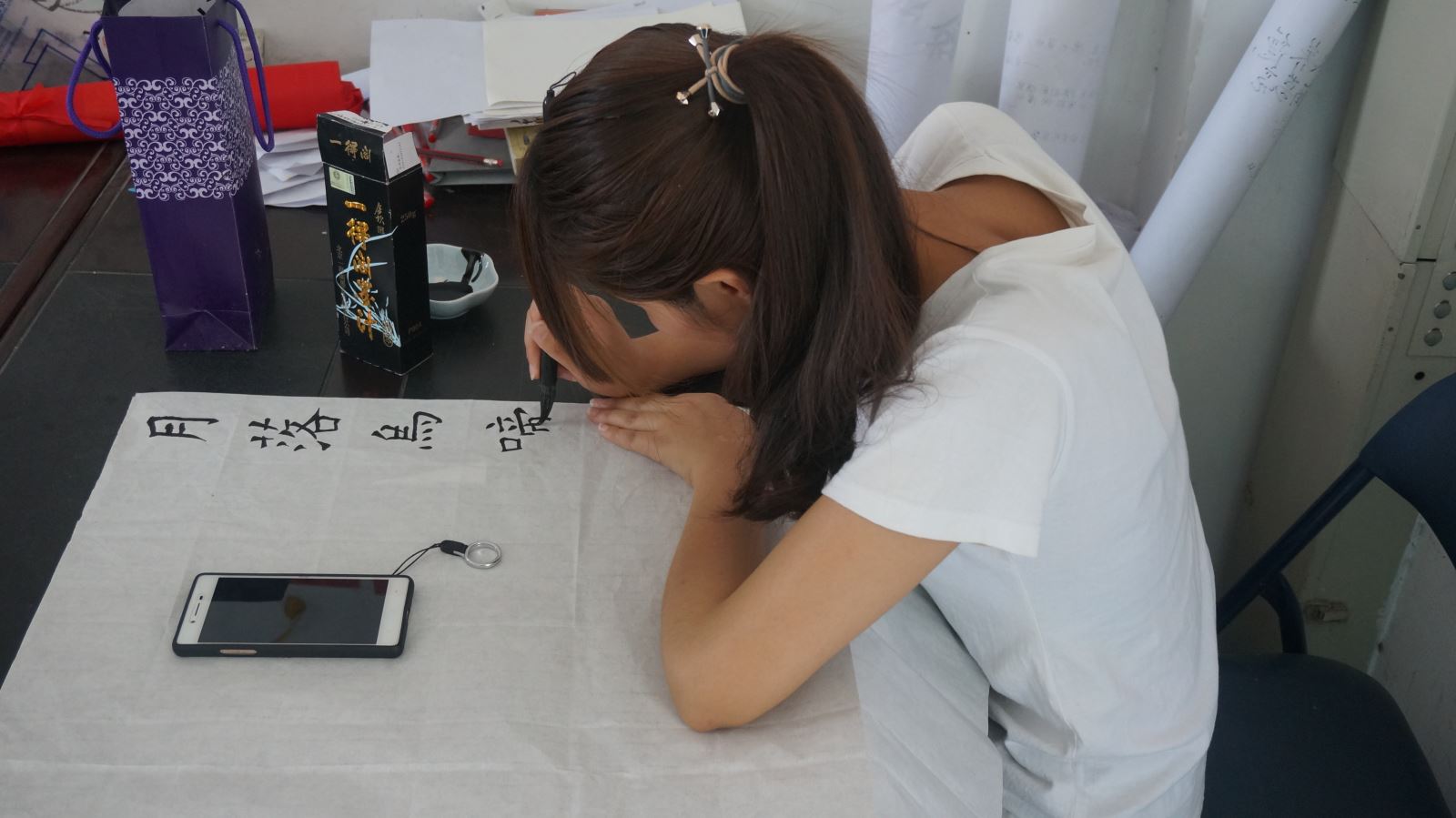 初赛面向我系所有班级征稿,并对书法作品进行筛选,选定进入决赛的选手。参赛作品中既有行云流水般的行书,也有娟秀工整的正楷。决赛定于5月26日中午十二点半在北区教学楼516教室举行。决赛现场,选手们挥毫泼墨,用自己的作品向人们展示书法的魅力和不同风格,从他们的参赛作品中,可以看出同学们对书法的浓厚兴趣。此次比赛,加深了同学们对书法的理解,也营造了积极向上、高雅文明的文化氛围,调动了大家学习书法的热情。