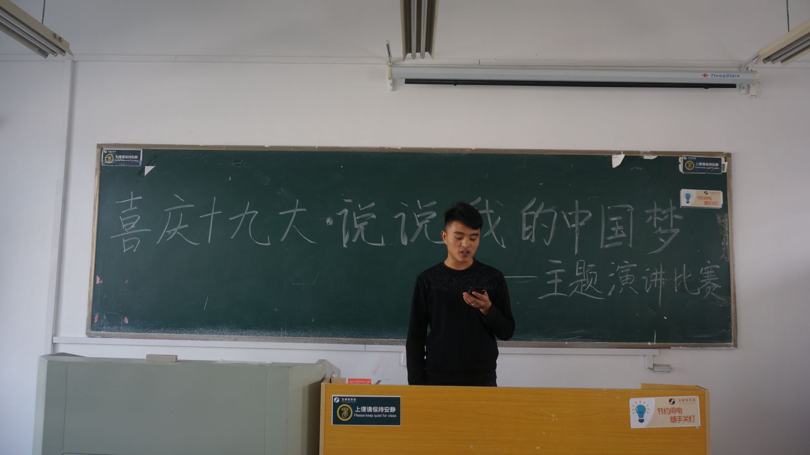 为庆祝党的十九大的胜利召开,表达大学生对党的热爱,抒发爱国热情,也为加强同学们的思想道德建设,我系举行了一场以“喜庆十九大-说说我的中国梦”为主题的演讲比赛。