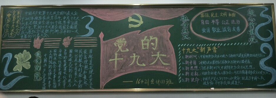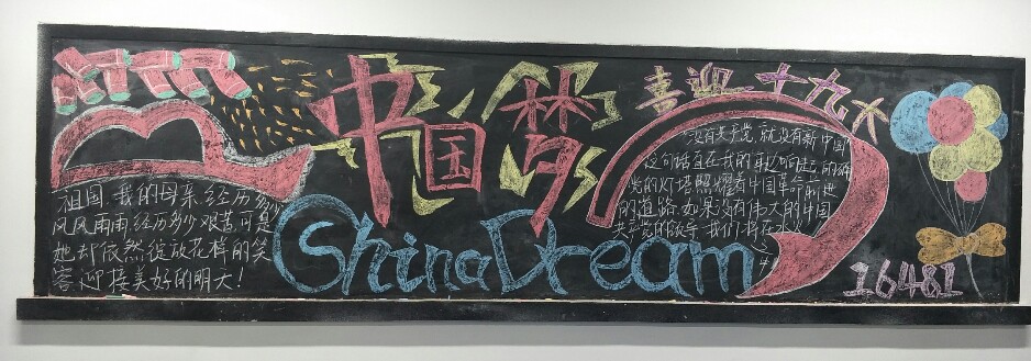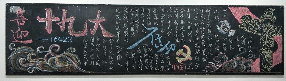 此次比赛面向我系大一大二各班级,以班级为单位报名参赛。在管理系团总支学生会的号召下,各个班级积极参与。在宣传委员带领下,同学们分工协作,精心设计,在班级黑板上用美妙的图案勾勒眼中的山河,用绚丽的色彩描绘心目中的祖国,表达对十九大胜利召开的喜悦,以及对祖国“母亲”的衷心祝愿。截至11月5日晚,我系学生会宣传部成员完成了各班板报作品收集的相关工作,并经过集体协商,评选出最终的获奖作品。