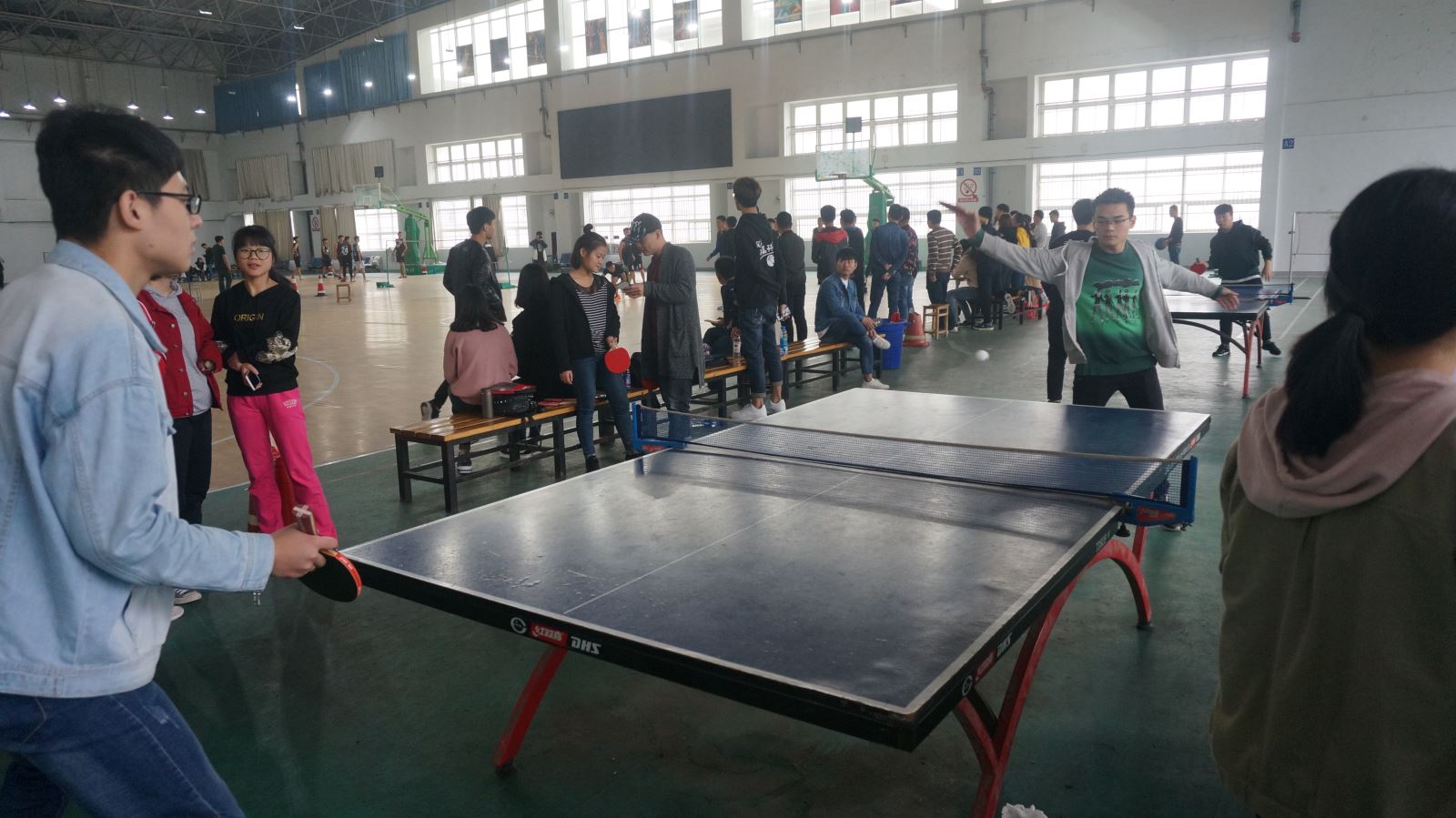 为活跃校园体育氛围,增强学生体质,我系乒乓球选拔赛于10月19日午十二时在体育馆二楼火热开赛。