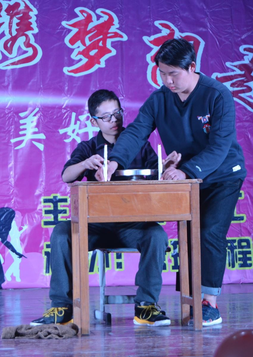 帷幕在音乐声中缓缓拉开,由舞灵社和安街社带来的一段《L.I.E》开场舞引爆全场。晚会在刘安婕书记对新生致辞后,正式开始!来到新的校园,面对新的环境,新的老师和同学,全新的一切,每个人都会有太多的改变,就是这样,来自15442夏芬带来的一首《改变自己》献给新生,同时唱出了属于自己的feel。《机器人》的小品让观众捧腹大笑,从中也看到了新生的幽默诙谐与青春的朝气,同时使得全场的气氛瞬间活跃起来了。天籁般的声音从舞台深处传来,原来是大一大二合作带来的歌曲串烧,其中由15443刘尚哲带来的一首韩文歌《crooked》更是带观众进入了音乐的殿堂,女生们也hold不住,把气球、荧光棒作为礼物都送给了他,场面气氛甚是热闹。由吉他社带来的吉他弹唱《彩虹》,随着吉他声的缓缓升起,“看不到你的笑,我怎么睡得着……”美妙的旋律构造出了青春甜蜜的爱恋。音乐是灵魂的知音,文字是内心的独白,朗诵是音乐与文字完美的结合,新生带来的朗诵《我的南方和北方》讲述了来自南北方的故事与不同的特点,但重要的是它们是我们的故乡与天堂。除了劲爆的舞蹈、动听的音乐、诙谐的小品等,更是有一场精彩且扣人心弦的魔术秀让观众大饱眼福,全场不住发生的惊叹声中无不展现了魔术的魅力之强大。中途小小的游戏互动环节更是让台上与台下的人融为一体,整场晚会高潮迭起。最后由管理工程系学生会成员带来的合唱《我的中国心》,带我们领略了祖国的壮阔雄伟,回到那个心潮澎湃的岁月,句句唱出了“我是中国人却不忘我的中国心”的感慨。