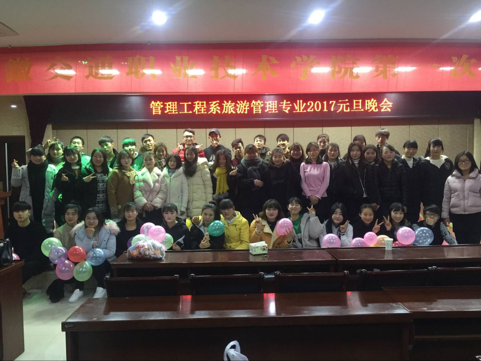 12月29日晚,我系旅游管理专业的两个班级同学欢聚一堂,在大学生活动中心举行2017元旦联欢晚会。