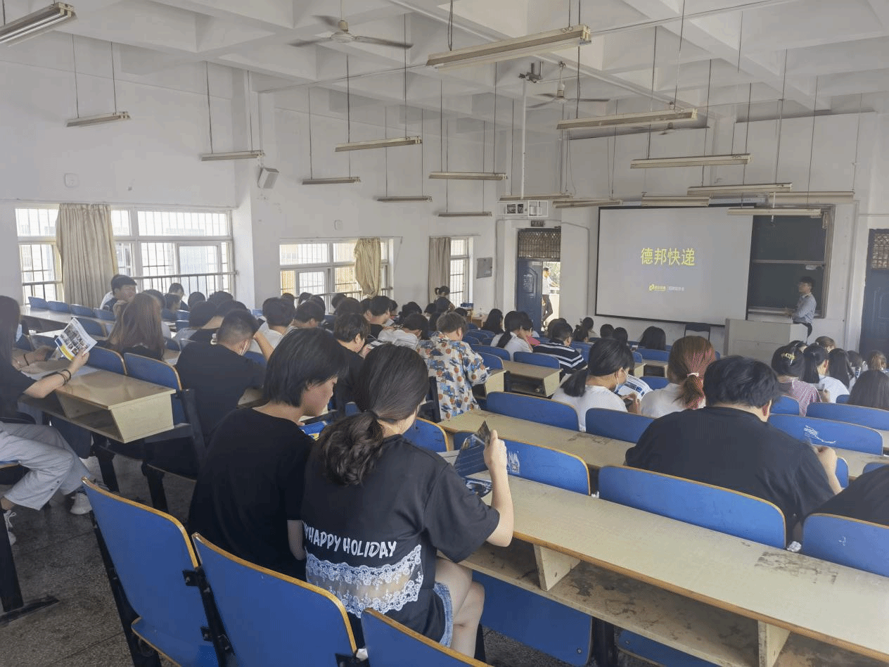 本次宣讲会邀请了安徽顺丰速运、德邦快递、安徽顺丰通讯服务有限公司三家企业现场宣讲,在近3个小时的宣讲会上,企业代表依次通过播放宣传片、讲解PPT等方式向同学们详细介绍了行业发展、公司简介、应聘方式等,并对同学最关注的招聘岗位、职业发展路径、薪酬福利等问题,做了详细的介绍,现场互动气氛热烈。
