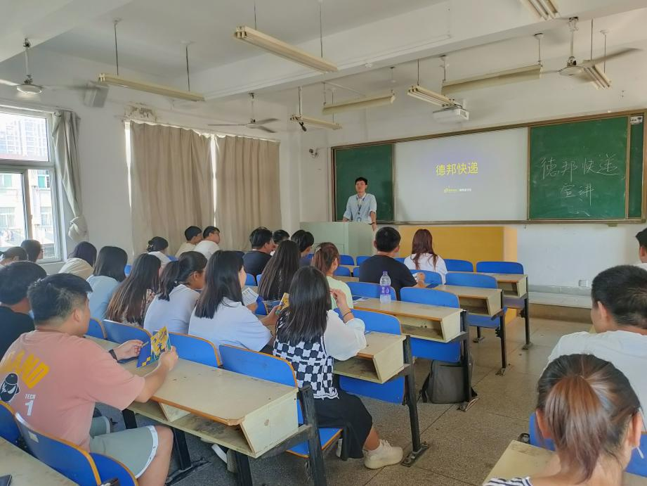 德邦快递2021年9月26日下午来我系举办专场宣讲会,招聘岗位有物流实习生、营销客服实习生、营运实习生营销管培生等,许多物流专业同学积极参加宣讲会,认真听取企业的宣讲介绍,在互动问答环节积极提问。(撰稿人:姜薇)