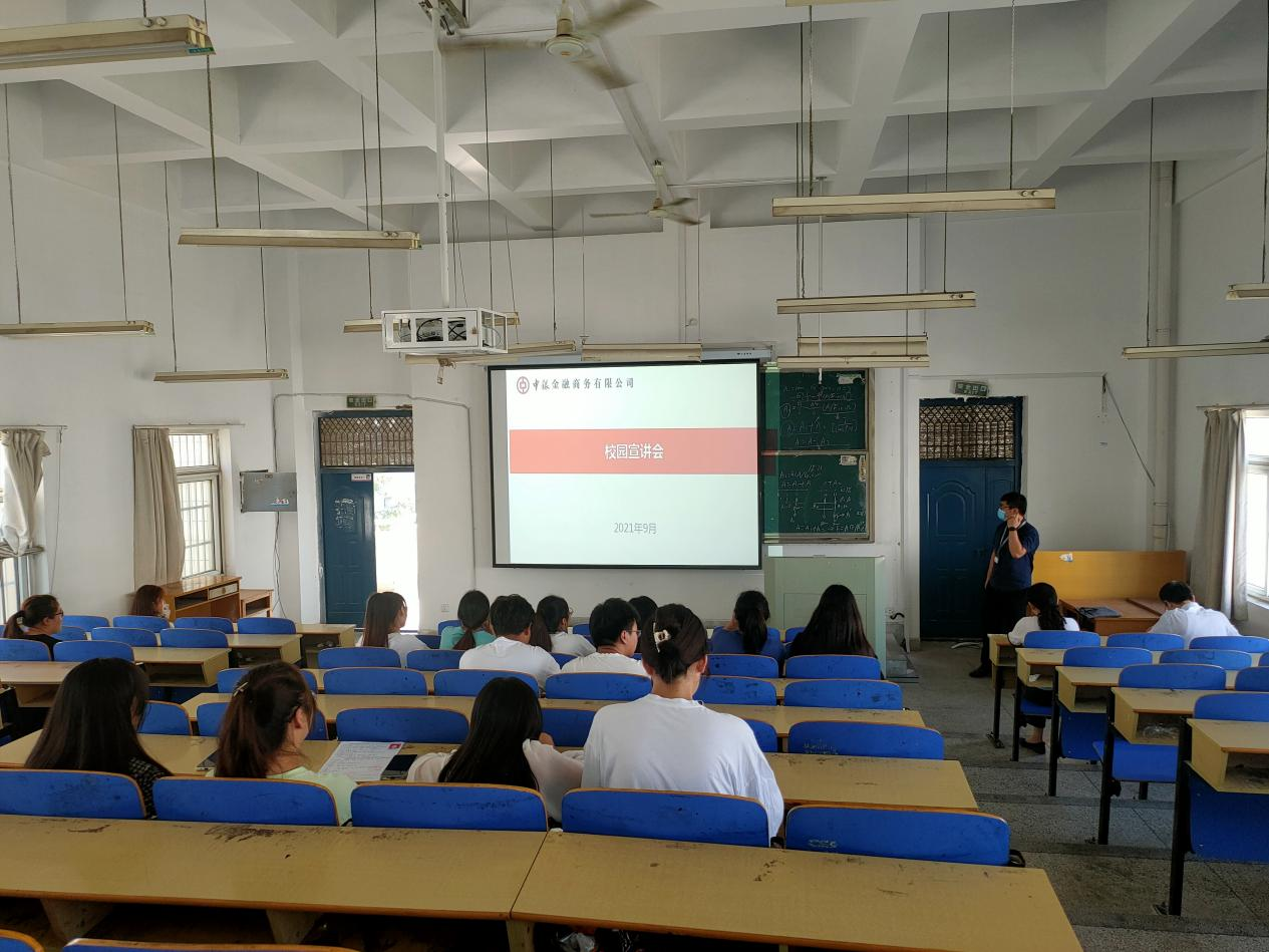 中银金融商务有限公司2021年9月26日下午来我系举办专场宣讲会,招聘岗位有综合客服、外呼营销客服等,中银金融商务有限公司人力资源副总、外呼业务总监也来到了现场,对企业的运营、管理及晋升制度等方面进行经验交流分享,同时还与现场学生进行了互动,解答学生们对实习工作的疑问。(撰稿人:姜薇)
