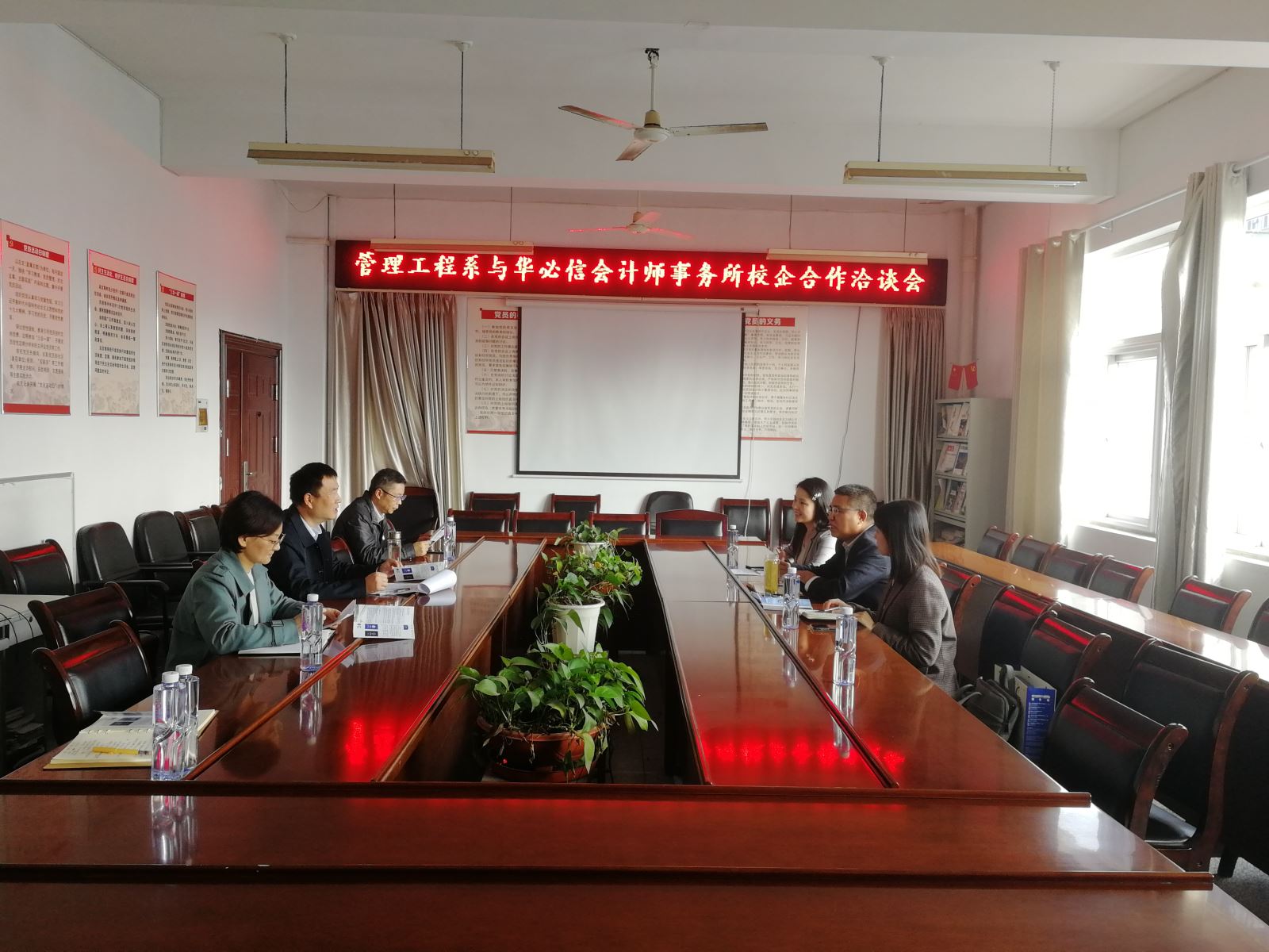 会上,岳朝晖首先对华必信会计师事务所一行来访表示诚挚的欢迎,并向对方介绍了学校概况、办学定位、系部专业设置、办学规模、人才培养等方面的基本情况。