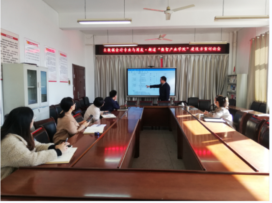12月8日上午,大数据会计专业与用友新道在管理工程系会议室召开“数智产业学院”建设方案交流研讨会。管理工程系主任岳朝晖、副主任吴金菊、用友新道股份有限公司安徽分公司高级教育咨询顾问黄锐和安徽分公司校企合作经理张安等参加交流会。
