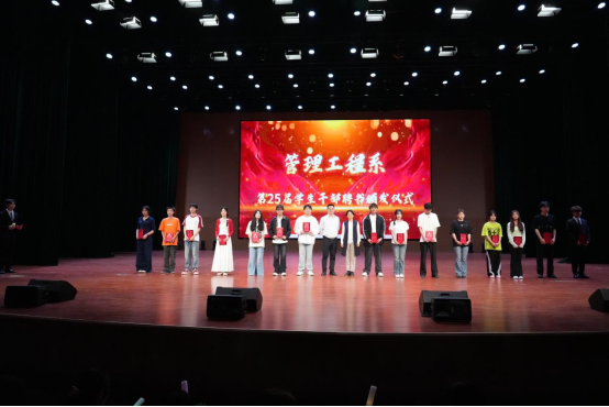开幕式上,与会领导为管理系“2025年社会实践先进个人”和第25届学生会干部颁发证(聘)书。随后,朗诵、小品、古典舞、汉服走秀等节目轮番上演,青春活力在舞台上飞扬,光彩魅力在表演中绽放,为观众们带来了一场视觉与听觉的双重盛宴,现场气氛热烈非凡。