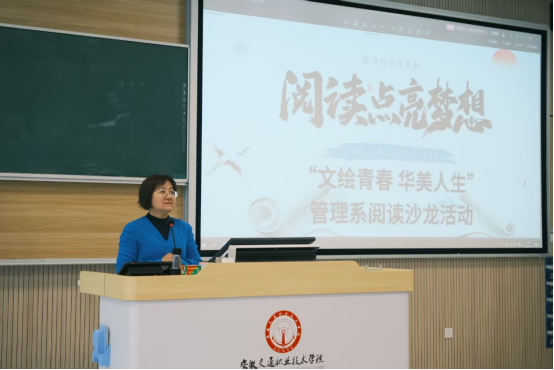 5月15日下午,管理系在尚能楼A201教室举办了线下阅读沙龙活动,邀请了管理系党总支书记汪思曼,学生管理教师王思敏、邵徐、张腊军,物流教研室教师张驰担任本次活动的嘉宾。来自管理系大一、大二各班的十五位选手向同学和老师分享了他们的阅读心得。选手们分别选择了《长安的荔枝》《我与地坛》《平凡的世界》《三体》《与时间做朋友》等书籍,从不同的角度立意,交流分享自己读书的感悟。整场活动营造了浓厚的读书氛围,活跃了紧张的学习气氛,使整个校园满溢书香。