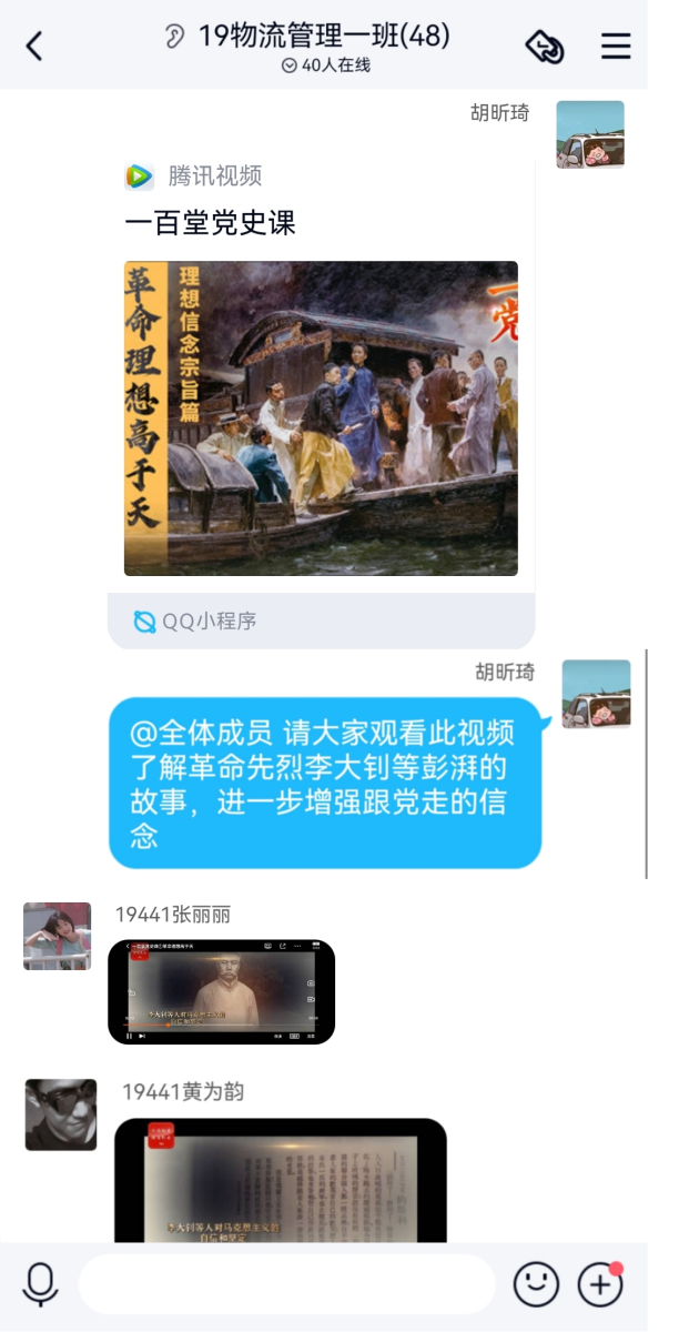 此次党史学习会,由各班团支书主持,通过观看红色革命影像、开展专题讨论会、组织班级知识竞赛等形式,引导广大团员青年厚植爱党、爱国、爱社会主义的情感,让红色基因、革命薪火代代传承。