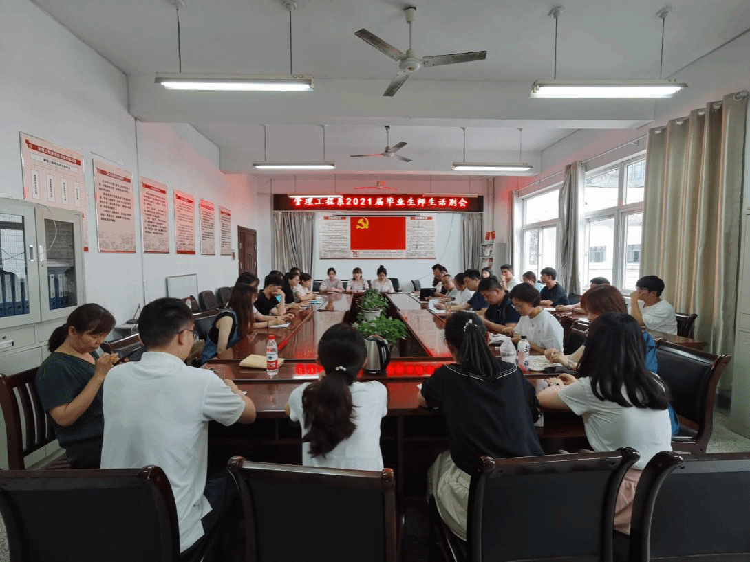 7月2日下午,在管理系会议室召开2021届毕业生师生话别会,系副主任岳朝晖,教研室主任赵明、吴金菊、胡勇,学生管理办公室汪莉、邵徐、王思敏、张腊军、姜薇,毕业班辅导员韩素兰、张明璇、雷姗和18位优秀毕业生代表参会,现场18位毕业生都分享了自己的感受,谈了谈这三年的收获以及对老师和学校想说的话。他们分享了自己这三年的感悟、专升本备考过程的坚持、面对困难的解决办法、就业过程中的注意事项、下一步的人生规划等等。