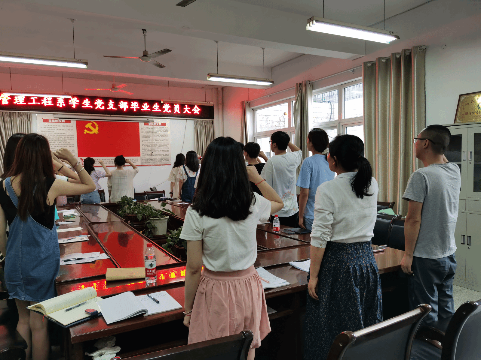 7月2日下午,系王思敏老师为2021届毕业生党员上“最后一次党课”。全体党员向党旗庄严宣誓,共同重温入党誓词。学生管理办公室全体老师祝愿毕业生在新的人生征程中,勿忘初心,砥砺前行,关心支持母校发展,常回家看看,希望大家继续以优秀共产党员的标准严格要求自己,努力学习,扎实工作,不辜负母校的培养以及老师的教诲,做社会栋梁,为母校争光!