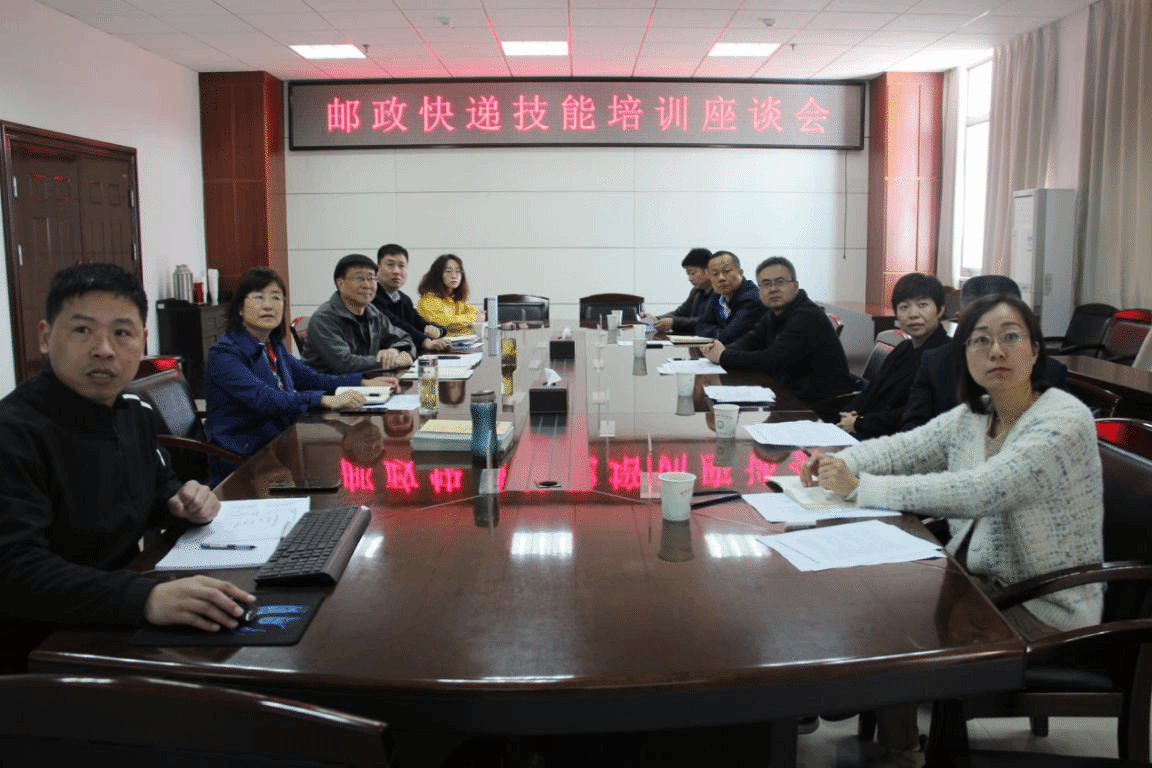 李凌介绍了此次座谈会的目的,表示为了进一步完善邮政快递技能培训内容,应当充分发挥学院的专业技能培训作用。