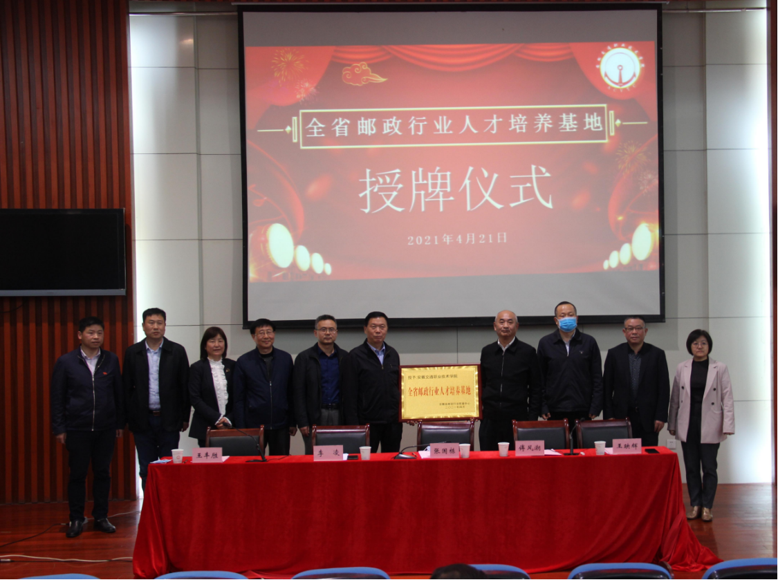 4月21日下午,全省邮政行业人才培养基地授牌仪式在米兰顺利举行。授牌仪式由副院长王丰胜主持,院长张国栋、安徽省邮政管理局副局长傅风潮、安徽省邮政管理局邮政行业职业技能鉴定中心主任李凌、合肥市邮政管理局副局长王映辉、合肥市快递协会秘书长王业志、管理系主任刘安婕、系总支书记汪思曼、系副科级以上干部、物流教研室全体教师及物流专业部分学生代表参见了本次仪式。同时部分快递企业代表参加了本次仪式。